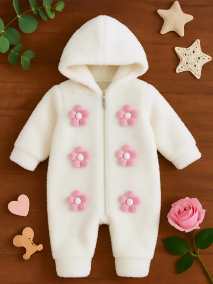Düğme Süslemeli Kışlık Fermuarlı Kapüşonlu Peluş Tulum