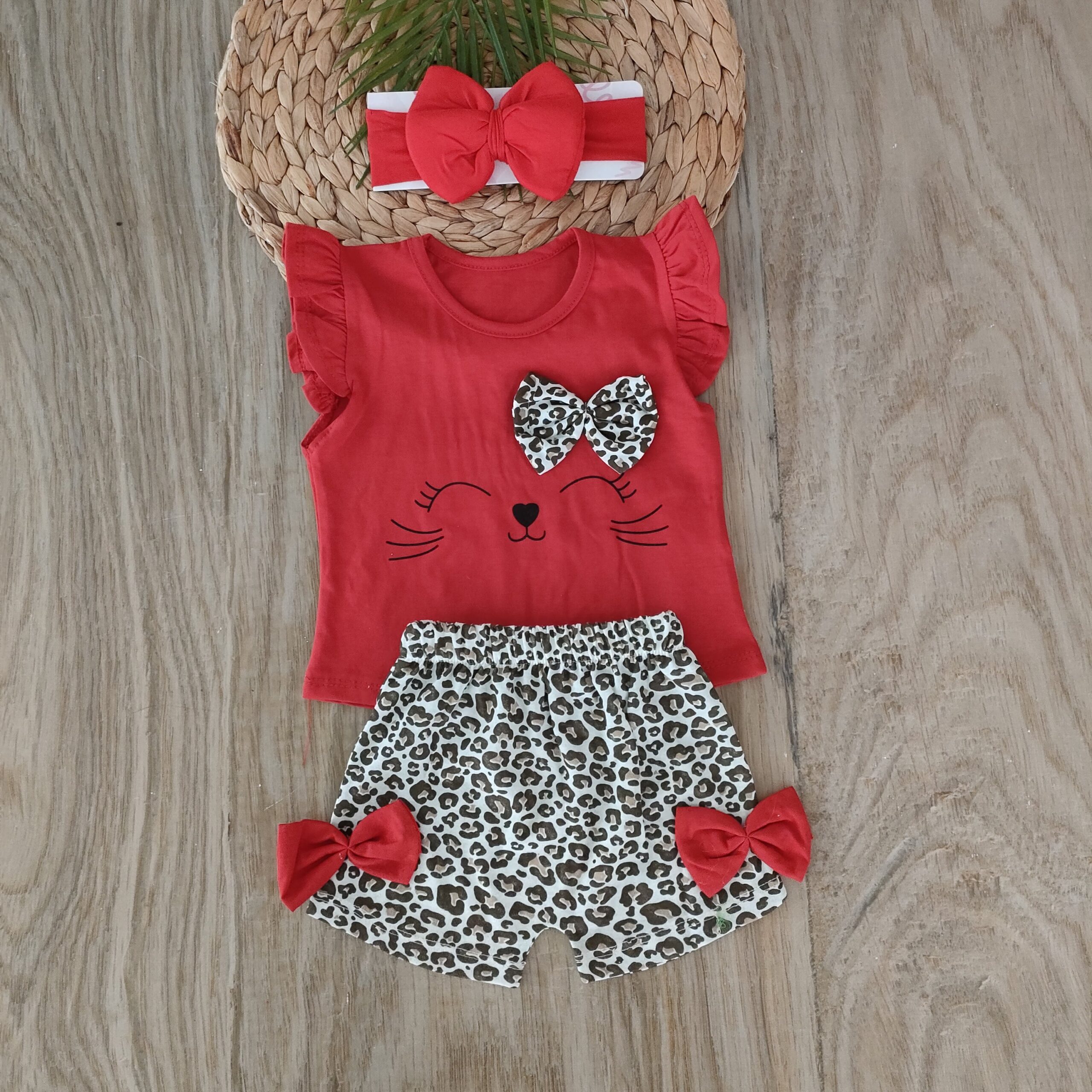 Ana Sayfa Mağaza Yaz koleksiyonu %100 Pamuklu Leopar Yazlık Şortlu 3’lü Takım