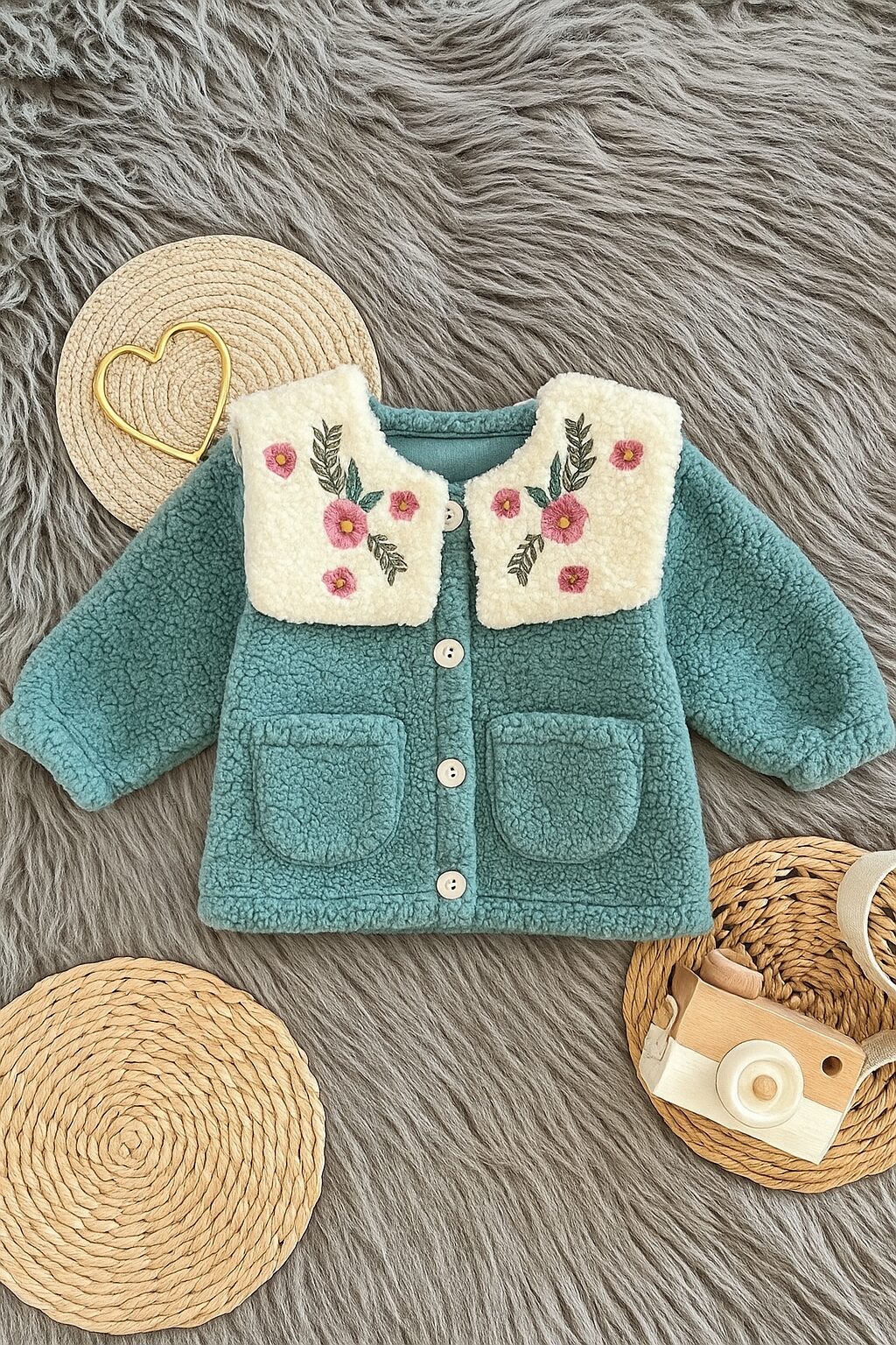 Ana Sayfa Mağaza Bebek Takımları Çiçek İşlemeli Peluş Ceket