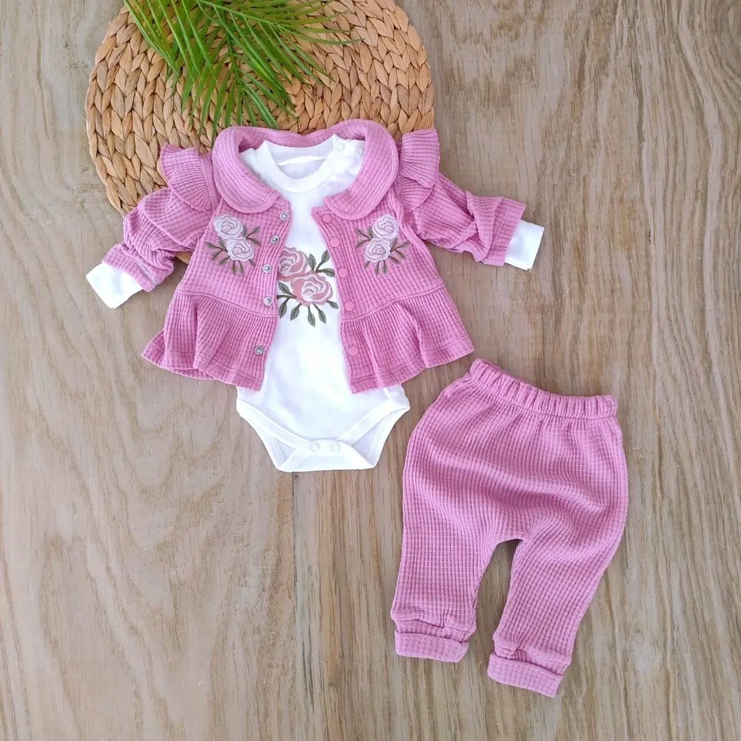 Ana Sayfa Mağaza Bebek Takımları Gül Kanaviçe İşlemeli %100 Pamuklu Mevsimlik 3’lü Takım