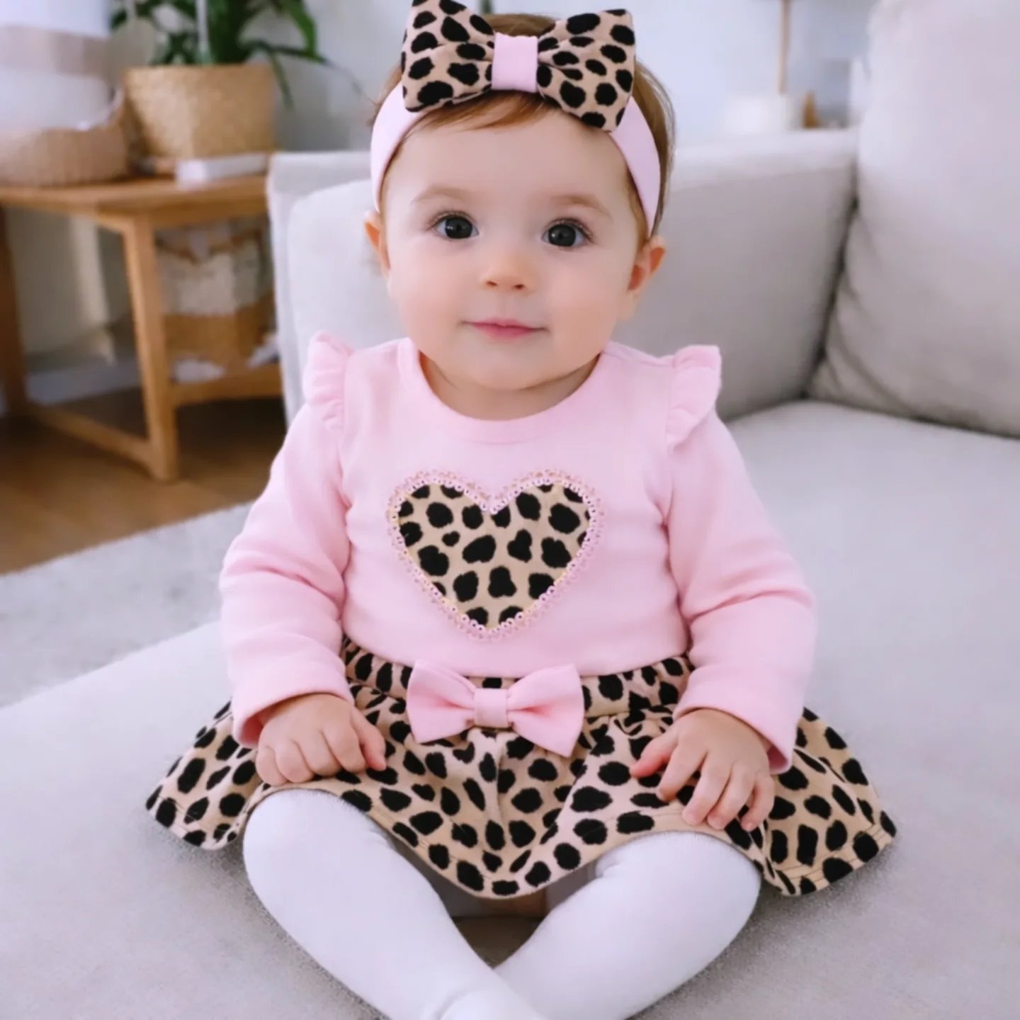 Ana Sayfa Mağaza Bebek Takımları Leopar Kalpli %100 Pamuk Etekli 3’lü Takım Elbise