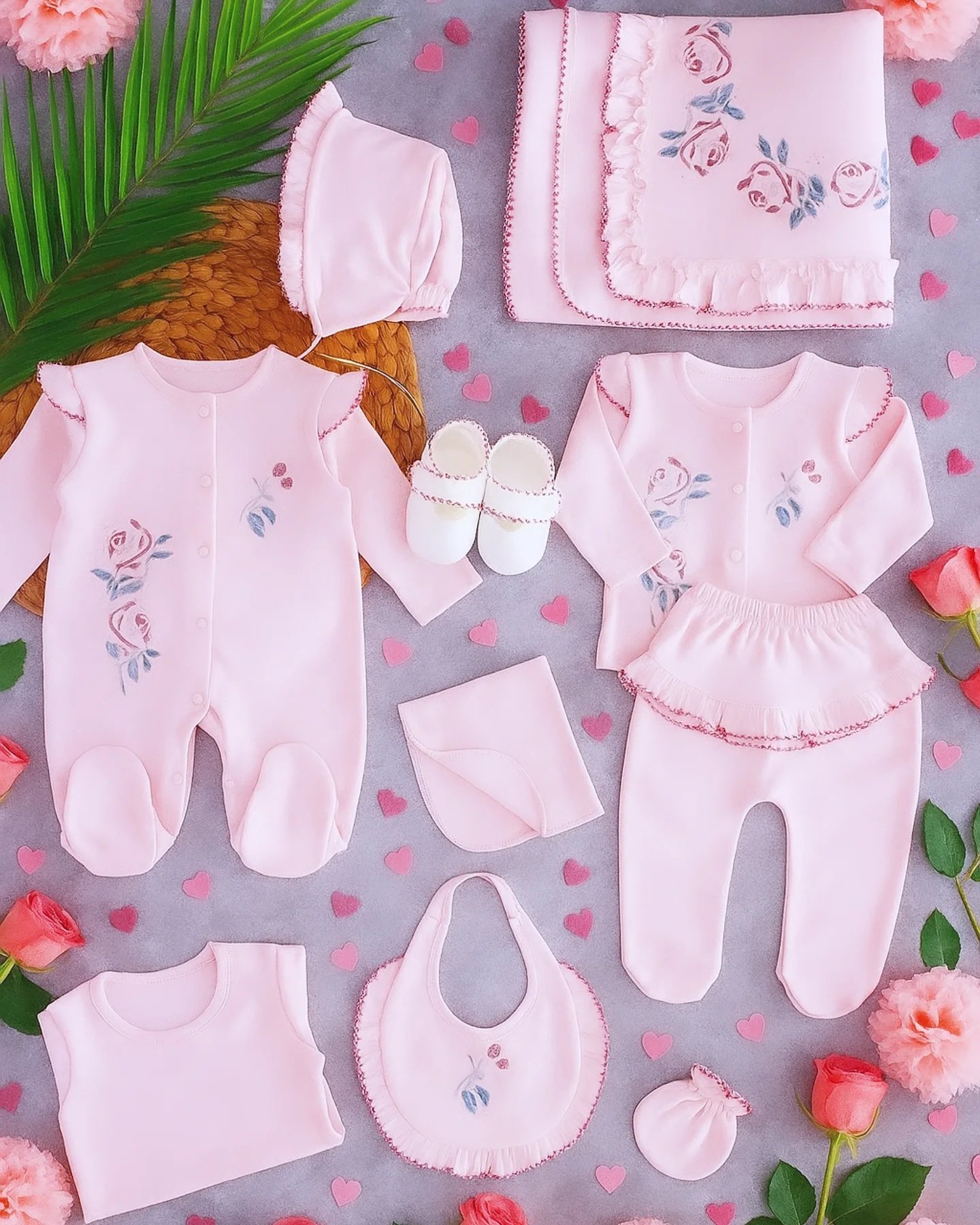 Fırfır detayı ve gül işlemleriyle çok şık bir set