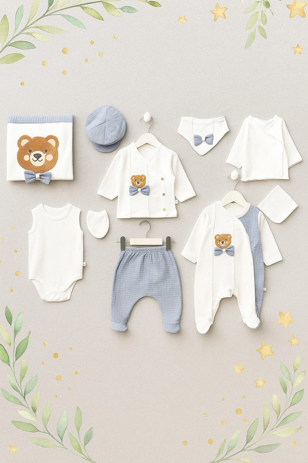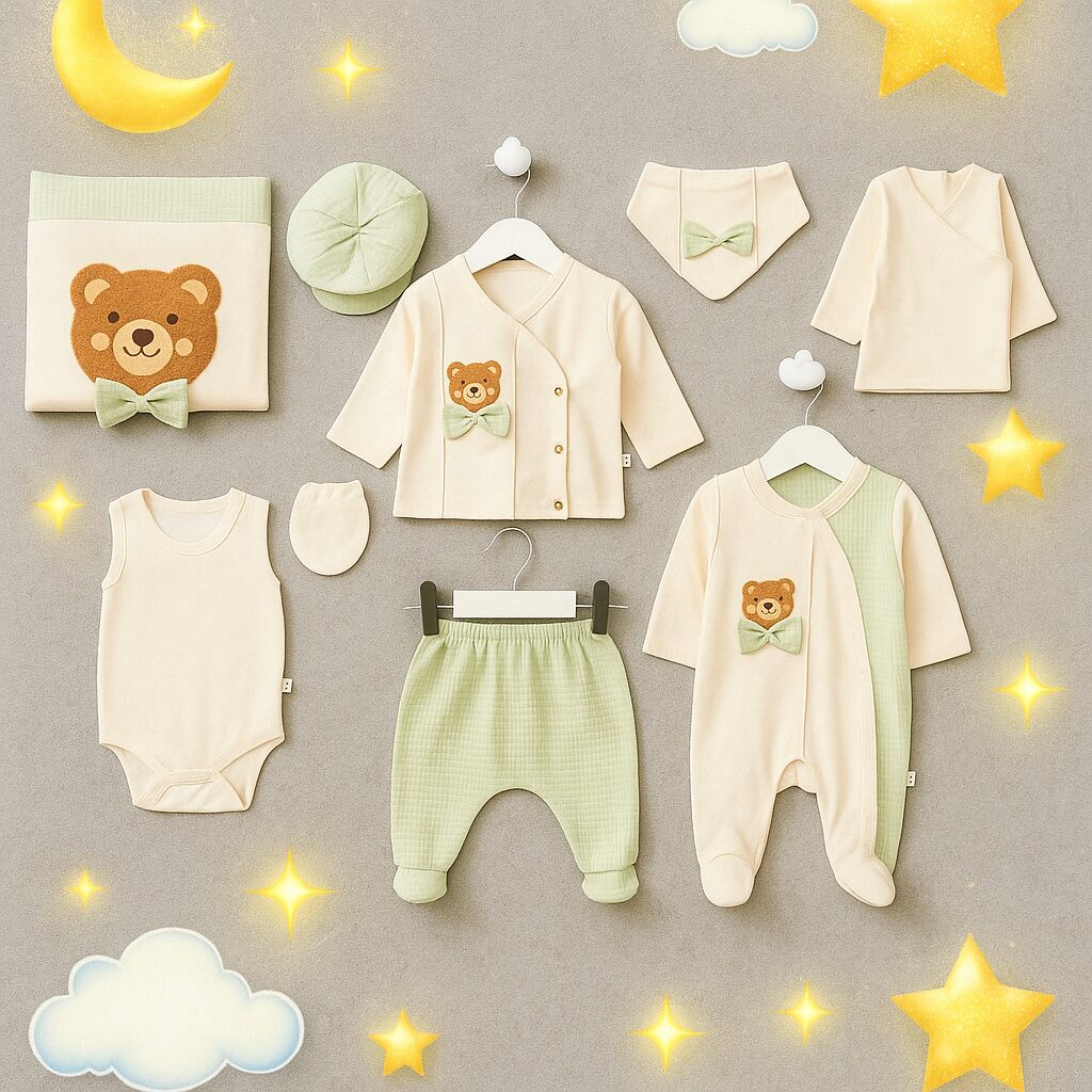 Yenidoğan cildine özel… yumuşacık doku…%100 Pamuklu hastane çıkışı zıbın seti